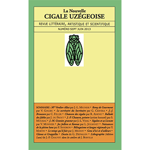 Nous allons prendre l’exemple de ce numéro, car beaucoup d’entre vous vont voir des noms d’auteurs qui ne leur disent rien du tout. Tout d’abord, il y a ceux du Comité de rédaction que vous connais- sez tous, par exemple Jean Mignot pour sa rubrique climatique, truffée d’une foule de dictons, ou encore Jean-Louis Meunier, notre référence littéraire. Et puis, il y a nos auteurs fidèles, souvent des abonnés, tels François-Guy Abauzit, toujours prêt à dégainer sa belle plume pour enrichir notre Cigale ou encore Robert Aimino qui donne à La Nouvelle Cigale des pages originales sur la cigale.