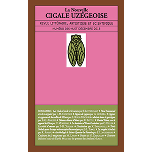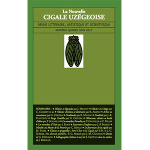 Ce numéro de la Cigale propose un dossier conséquent sur « La poésie en Uzège » comprenant, à la fois, une réflexion sur ce qu’est un poème (R. Little) et des témoignages sur des poètes de l’Uzège qui ont souvent une dimension nationale voire internationale, comme Marc Alyn (M. Lafon), Frédéric Jacques Temple (J.C. Forêt), Corinne Hoex (M. Lastschenko), Jeanne Palanque (M. Olmière et G. Boccaccio). Ce sont aussi des poèmes et des haïkus concernant l’Uzège de plusieurs écrivains : Roger Little, Jacques Merceron,… En savoir plus